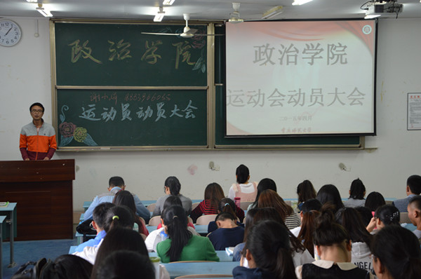 于2015年4月15日13:00在弘德楼5202教室开展了运动员动员大会。辅导员张晓庆老师出席此次大会,2013级和2014级全体学生参加。
