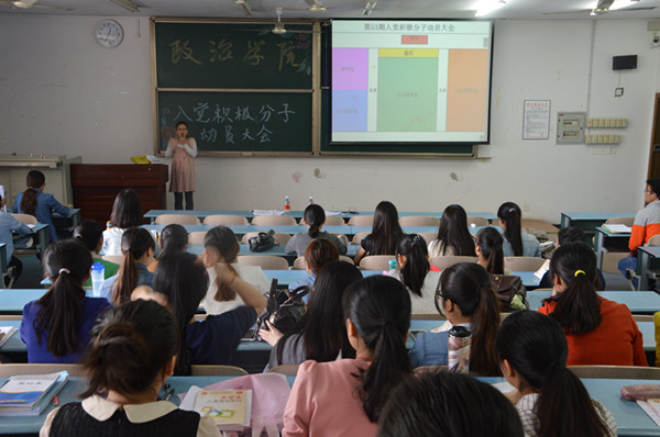 首先,张老师严肃强调了党校学习纪律,提出了两个要求——无手机课堂和按时上课。“平时应认真学习、不断积累,切忌考试突击现象,真正掌握真知、了然于心。”张老师如是说。鞭策同学们脚踏实地,认真学习。其次,张老师从发展党员所需具备的素质入手鼓励同学们积极进取、创先争优。最后,张老师对入党积极分子提出了殷切希望,希望同学们始终坚持全面发展,提高各方面素质,始终在同学们中起先锋模范作用。