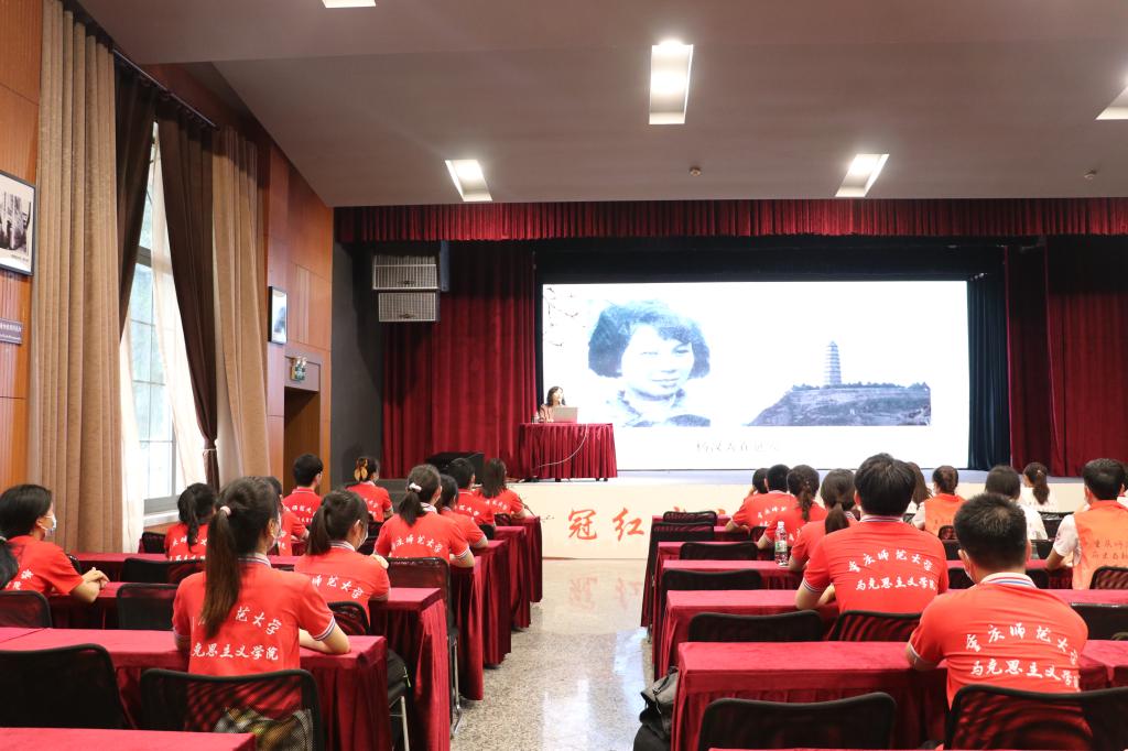 专题课程《巾帼心向党,两“秀”耀中华》,通过讲述红岩英烈杨汉秀的革命斗争经历,同时结合“时代楷模”黄文秀把生命献给脱贫攻坚的感人事迹,感染、教育、启迪大学生党员同志要不忘初心,牢记使命,勇于奉献;沉浸式情景剧《共和国不会忘记——张露萍》讲述了卧底军统机关内部的“红色特工”张露萍对爱人、对党、对理想的忠诚,为研学团队成员带来一堂生动的爱国主义教育微党课。
