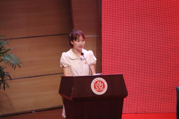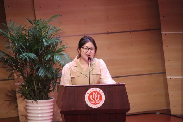 接着,低年级学生代表罗越红上台发言,她呼吁同学们努力做到坚守理想信念、践行知行合一以及树立良好形象,并美好祝福毕业生们扶摇直上、鹏程万里,衷心祝愿学院如月之恒、如日之升。