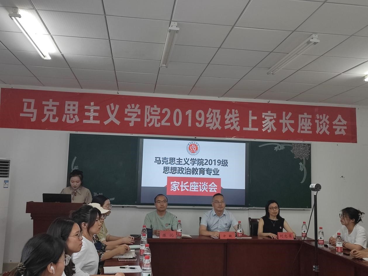 “本科2019级家长座谈会”在汇贤楼309顺利举行。学院党委副书记方敏、教师代表刘忠荣老师、2019级班主任陈沉,以及2019级全体学生和家长应邀参会。此次家长座谈会采取线上线下相结合的方式举行。