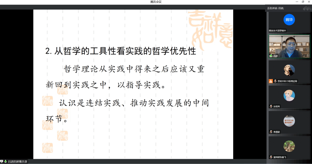 首先,吕进教授从“存在与认识”和“哲学的工具性”两个角度对实践在哲学上的优先性地位进行一定的阐释。吕进教授指出,从实践出发来认识存在才是马克思主义的正确方向。他强调,哲学理论应该从实践中得来又回到实践之中,以此指导实践。而后,吕进教授从运动、统一、辩证三个维度论述了实践和辩证法的一致性。