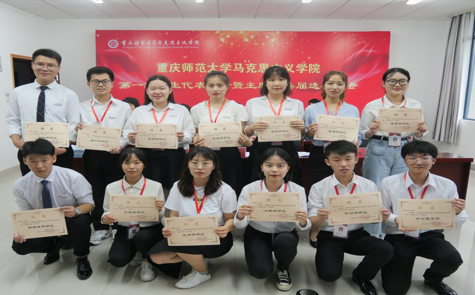 17时整,全体师生合唱团歌后,大会圆满结束。本次大会是在共青团积极推动高校学生会深化改革的大背景下召开的,根据《关于推动高校学生会(研究生会)深化改革的若干意见》(重师青联发〔2020〕1号))相关规定,学院认真规范学代表、学生会候选人选拔程序,成立学院、团总支、团支部三级评审小组,经过学院党委、团总支、团支部三公示,选举结果报学院党委审批,力争选出更好服务青年学生成长成才的学生干部队伍。相信在学院党委的领导和团总支的指导下,第十二届团总支·学生全体成员将不负嘱托、砥砺前行,助推学院团学工作展现新气象,铸就新辉煌。