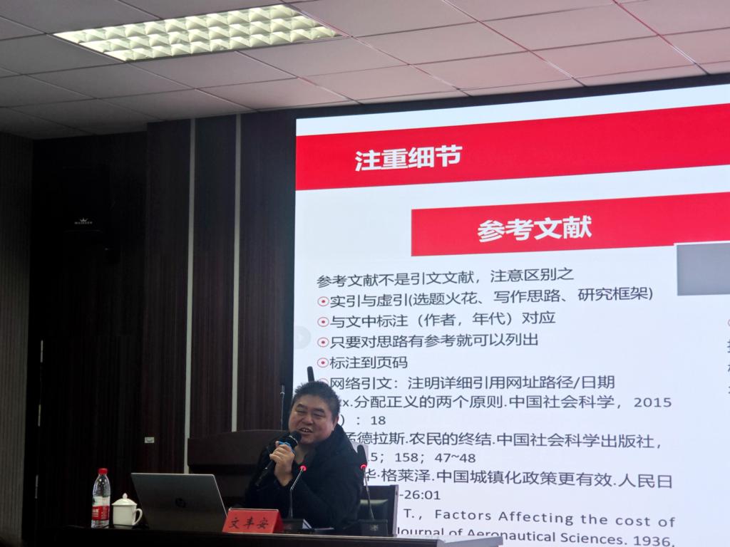 文丰安教授从筹划选题、把握内涵、合理规划、注意细节、提高命中率五个方面进行了具体全面、生动细致的讲解,帮助广大师生提高学术视野、拓展学术能力,为学院师生上了一堂高质量的论文写作指导课。
