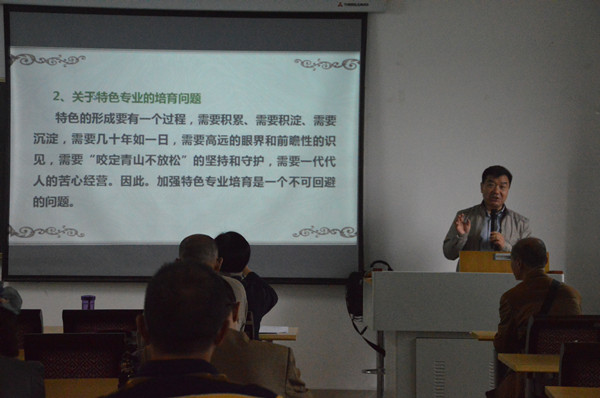 首先,袁祖社教授介绍了中国高等教育内涵发展背景下“双一流”工程建设。袁祖社教授强调,内涵式发展是高等教育的必然选择,高等学校特色专业建设是优化专业结构、提高人才培养质量、办出专业水平和特色的重要措施,是实现内涵式发展的有力保障。他重点介绍了国家级特色专业的基本内涵、背景以及培育方略问题,认为应该从师资队伍建设、资源保障、制度建设等方面促进特色专业建设。