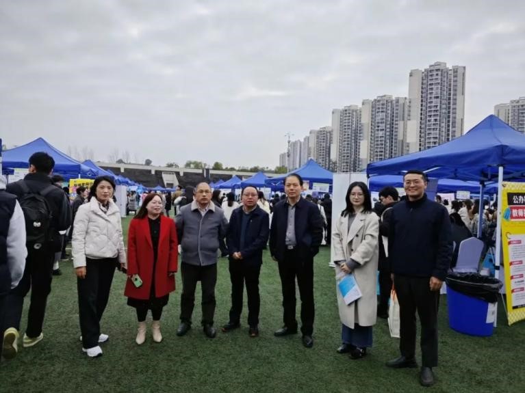双选会期间,学院党委副书记、执行院长姜土生、党委副书记方敏、副院长侯玲与副院长田方林、教研部主任孔庆茵、教研室主任王开莉、思想政治教育系主任左秋明以及91自拍论坛