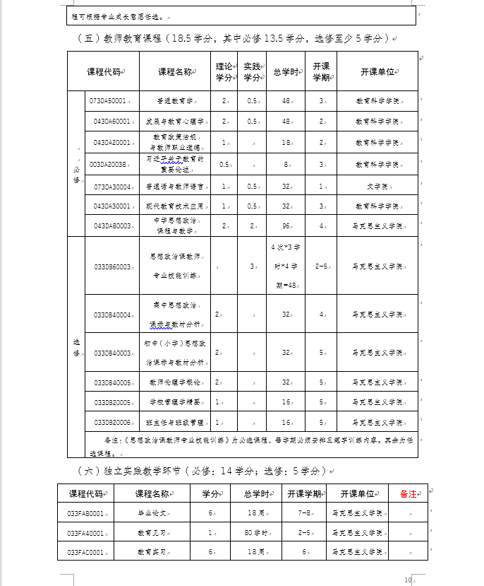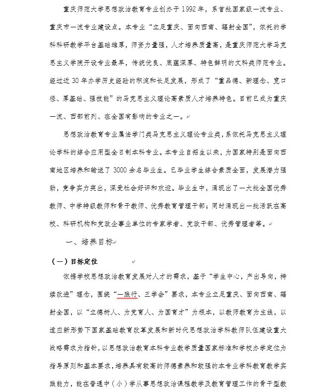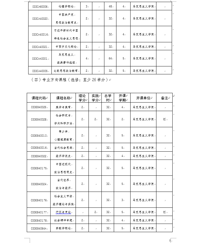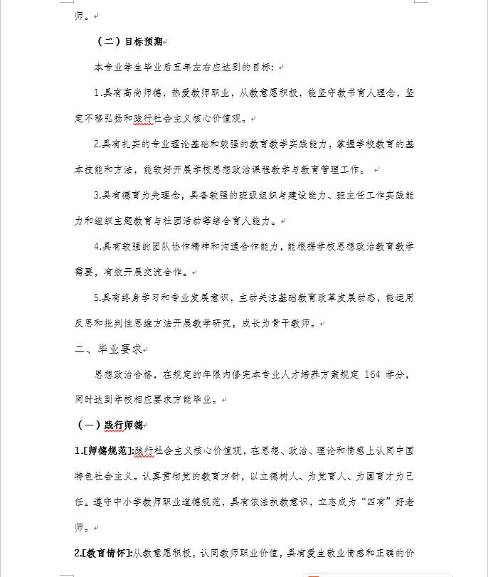 91自拍论坛 2020级思想政治教育专业(师范)本科人才培养方案
