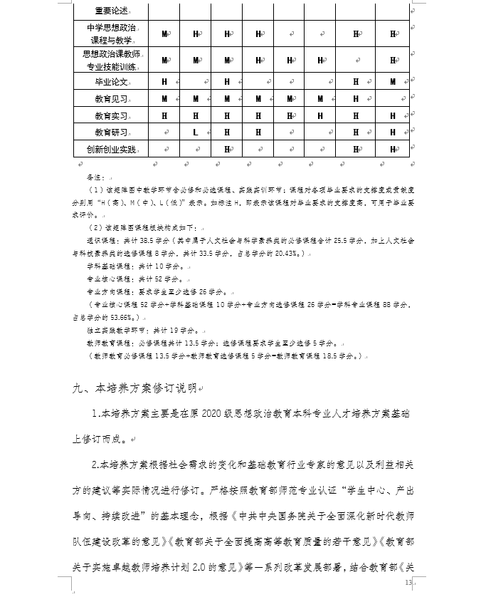 91自拍论坛 2021级思想政治教育专业(师范)本科人才培养方案