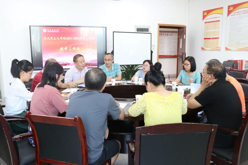 本学年本科教学工作要点,并重点强调了夯实一流本科专业建设、强化一流课程与一流教材建设、做好教学成果奖和教改项目申报、抓好教师教学竞赛、推进课堂教学改革、提高实践课教学质量、严格落实好教研室活动计划、抓好其他主要工作等九个方面的具体工作。同时,强调了任务分解、责任落实的重要性。最后,刘军书记对近期以及下一学年的重要工作做了强调,希望各系部教研室科学规划、努力工作,为学院“十四五”建设高质量本科教育开好局、起好步,为学校建设成高水平示范性师范大学做出更大贡献。