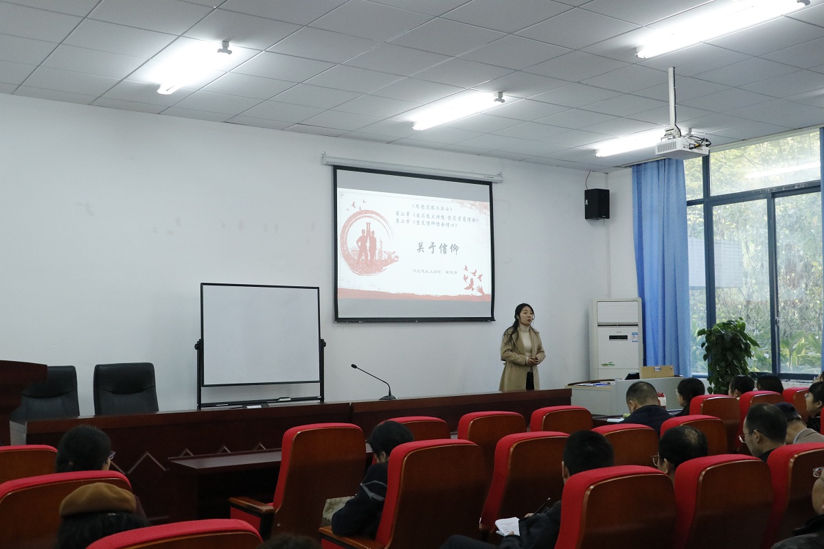 在教学示范观摩课环节,杜红副教授围绕“商品及商品二因素”展开授课。她从双十一购物的现实案例导入,分别阐释了什么是商品和商品的二因素,课程逻辑线索清晰、讲解深入浅出,在为同学们阐释商品本质的基础上,引导同学们养成合理的消费习惯。随后,曾庆芳老师从“信仰”这一主题入手,围绕“什么是信仰,为什么要有信仰和如何坚守信仰”三个方面展开授课,并紧密结合习近平总书记重要讲话,引导同学们坚定科学信仰,为中华民族伟大复兴贡献青春力量。